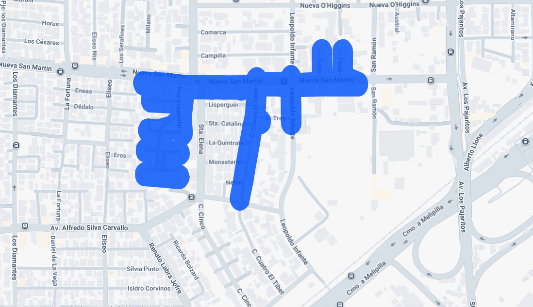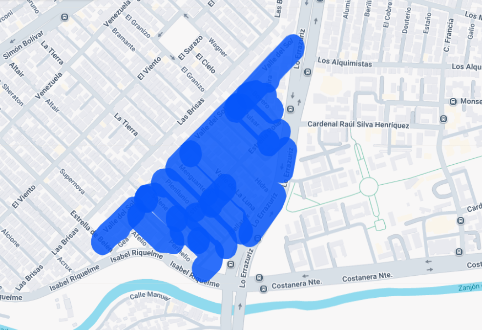 - Barrio Lo Errázuriz: desde Valle del Sol hasta Lo Errázuriz, entre las 10:30 y las 14:30 horas (4 horas).