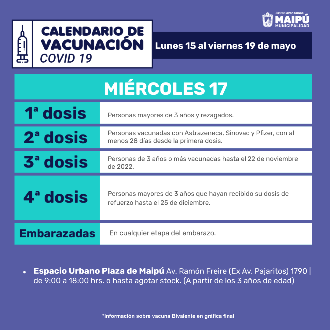- Espacio Urbano Plaza de Maipú (Av. Ramón Freire -Ex Av. Pajaritos- 1790) de 9:00 a 18:00 hrs. o hasta agotar stock. (A partir de los 3 años de edad).