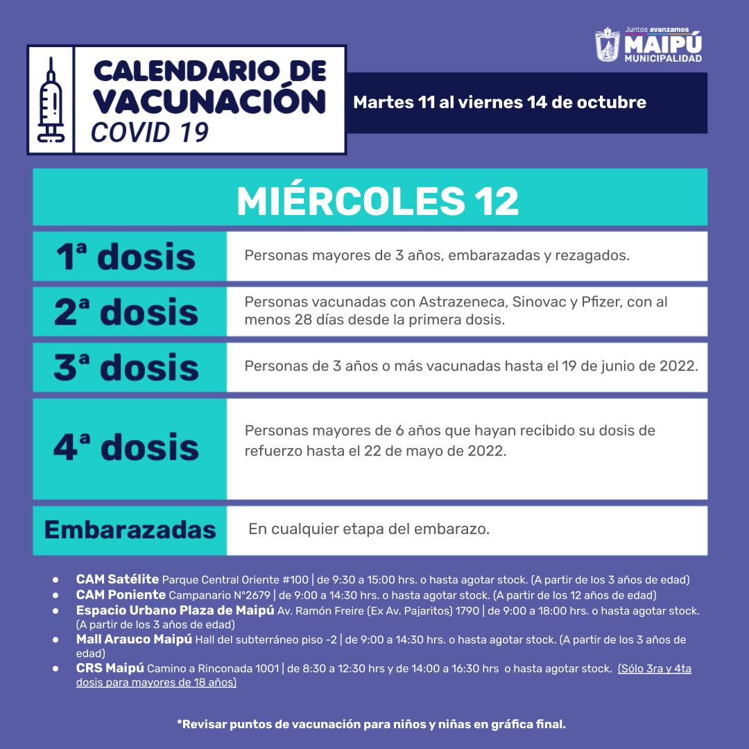 2. Calendario de Vacunación en Maipú: 1a, 2a, 3a, 4a dosis y embarazadas: