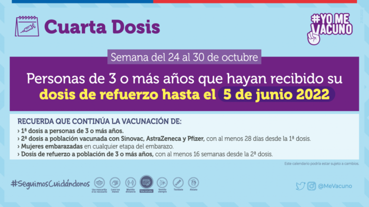 • Cuarta dosis a personas de 3 o más años que hayan recibido su dosis de refuerzo hasta el 5 de junio 2022.