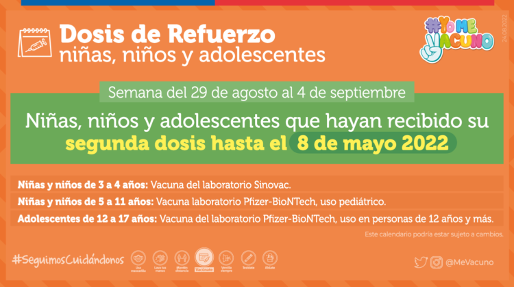 - Dosis de refuerzo a niñas, niños y adolescentes que hayan recibido su segunda dosis hasta el 8 de mayo 2022.