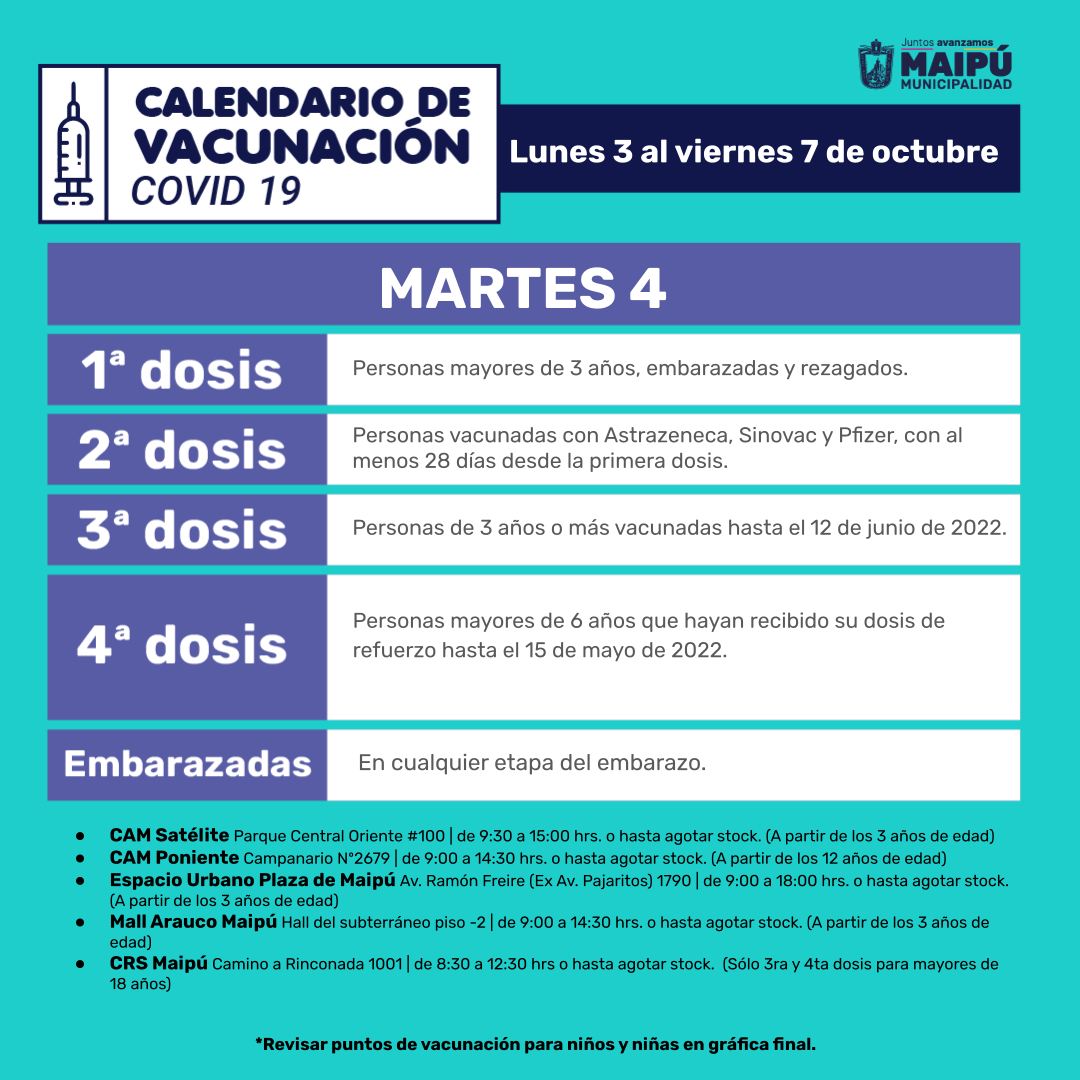2. Calendario de Vacunación en Maipú: 1a, 2a, 3a, 4a dosis y embarazadas:
