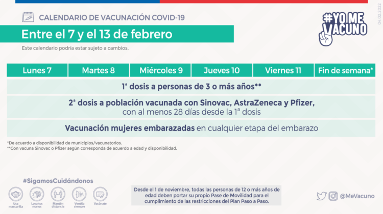 Covid-19: calendario de vacunación semana del 7 al 13 de febrero