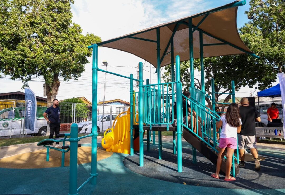 La plaza ahora cuenta con nuevo equipamiento deportivo e infantil, iluminación renovada y mobiliario que busca fomentar las actividades recreativas y deportivas en comunidad.
