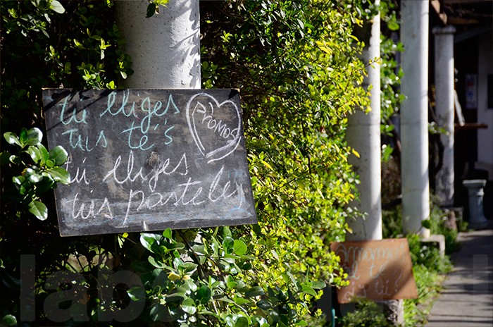 Pero falta agregar, por supuesto, una variedad de mezclas de té gourmet en crecimiento, tanto calientes servidas en tazones de casi medio litro como heladas servidas en vasos, el café italiano Lucaffe, las tortas, kuchenes y dulces artesanales, almuerzos caseros y productos salados tales como empanadas de espinaca queso, champiñón crema y napolitanas.