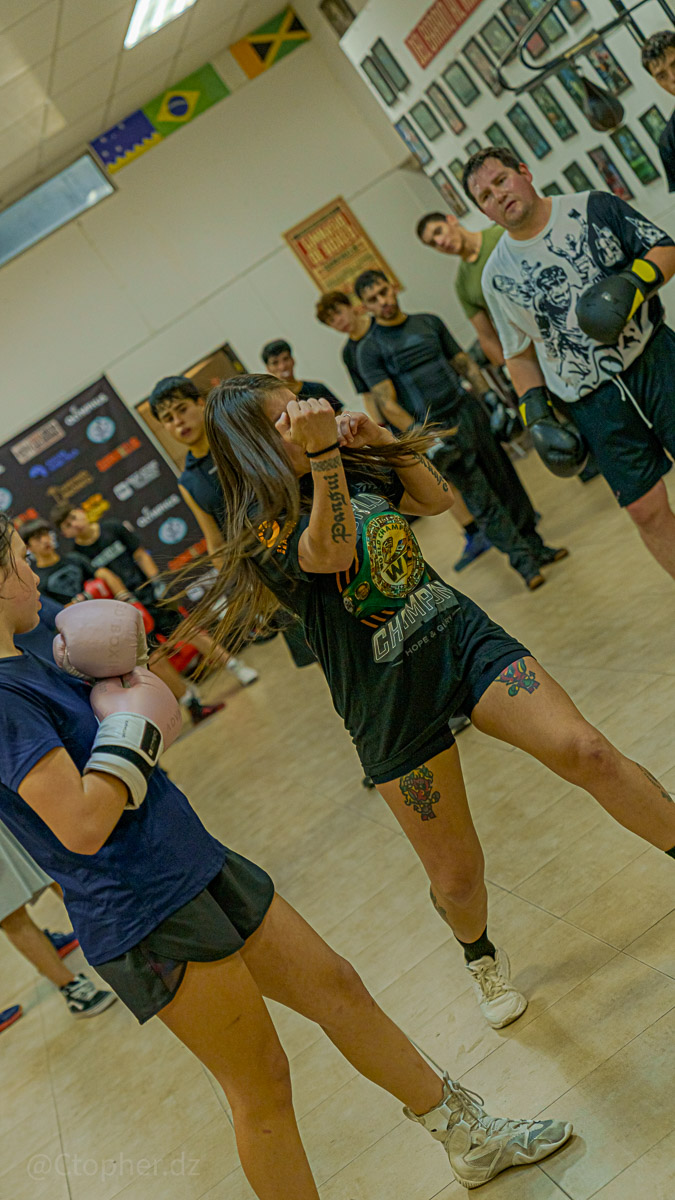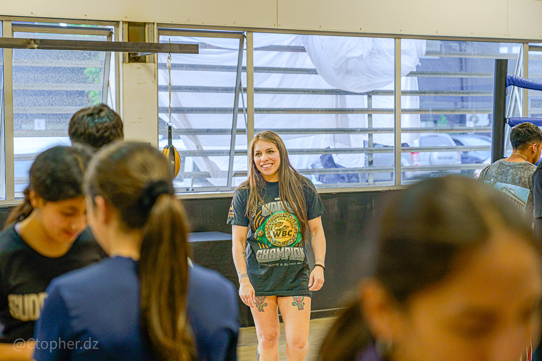 “La Leona” plasmó su talento y disciplina entre los aplausos y sonrisas de las jóvenes promesas del boxeo, quienes fueron testigos de una clase que quedará grabada en la memoria del club maipucino.