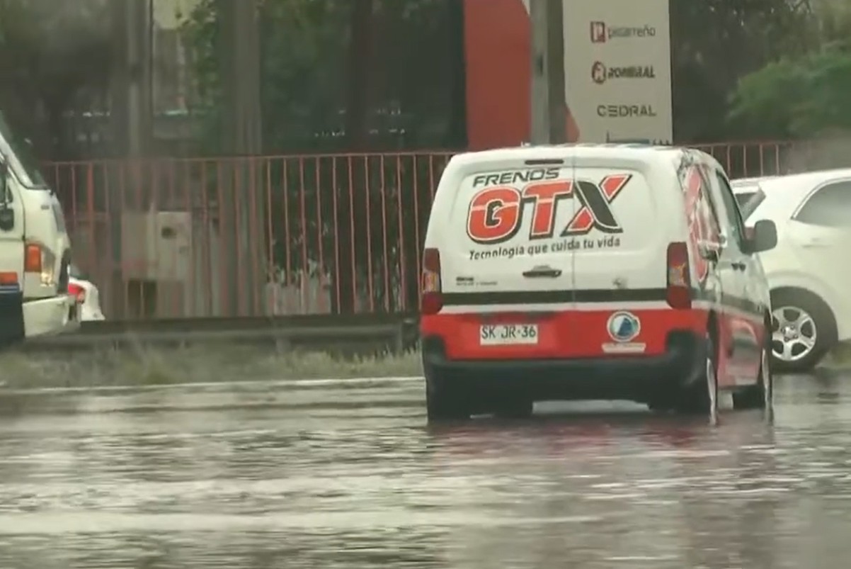En Maipú, Transporte Informa reportó acumulación de agua en distintos puntos críticos de la comuna -lo que obligó a los automovilistas a buscar rutas alternativas-, entre ellos: