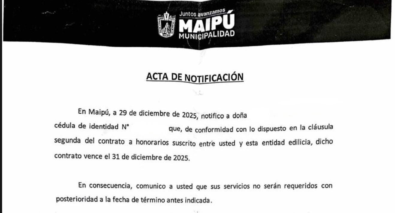 Diversas reacciones ha generado en la comunidad local el anuncio del despido de cerca de 250 trabajadores del municipio de Maipú, notificaciones que fueron entregadas en los últimos días del mes de diciembre de 2025.