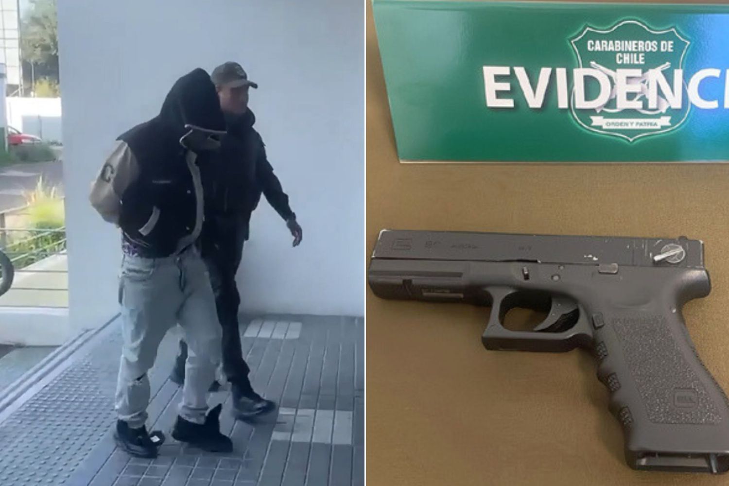 Durante el registro de sus vestimentas, Carabineros halló una pistola. El mayor Luis Segura, comisario de la 29ª Comisaría de La Farfana, explicó los detalles del peritaje inicial: