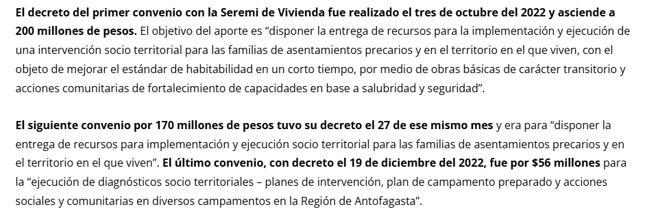 El Caso Convenios -que sigue siendo investigado por la Comisión investigadora de la Cámara de Diputados a la vez que por el Ministerio Público en múltiples aristas que surgieron a partir de la exposición de los hechos que a continuación se relatan-, nos retrotrae a junio del año 2023 cuando el medio local de Antofagasta, Timeline, destapó el convenio en el que la fundación Democracia Viva se adjudicó tres convenios por un total de $426 millones con la Seremi de Vivienda de Antofagasta, desde octubre a diciembre de 2022.