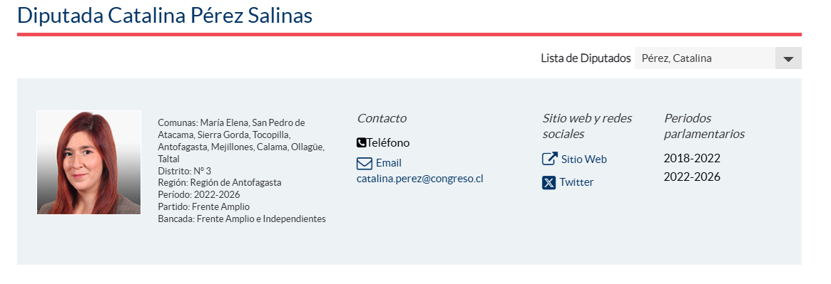 Por otra parte, en el año 2022 el representante legal de Demoracia Viva era la expareja de Catalina Pérez, Daniel Andrade, mientras que el exseremi de Vivienda en Antofagasta era Carlos Contreras, ex jefe de gabinete entre 2020 y 2021 de Catalina Pérez, entonces presidenta de Revolución Democrática (RD).