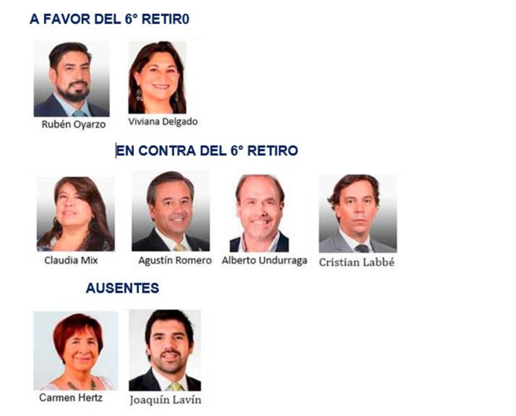 Otros/as parlamentarios que apoyaron la negativa gubernamental indicaron que respaldar los retiros era un acto irresponsable y populista. Por su parte quiénes apoyaban el sexto retiro, llamaban a atender a as
