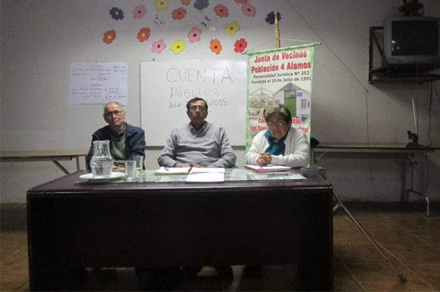 El domingo 24 de mayo, ante vecinos y vecinas de la villa 4 Álamos de Maipú, y en la sede vecinal, la directiva de la junta de vecinos Población 4 Álamos, presidida por Ricardo Acuña, e integrada además por Ana Valdés y Domingo Labra, rindió cuenta pública de su gestión en el trienio 2012-2015.