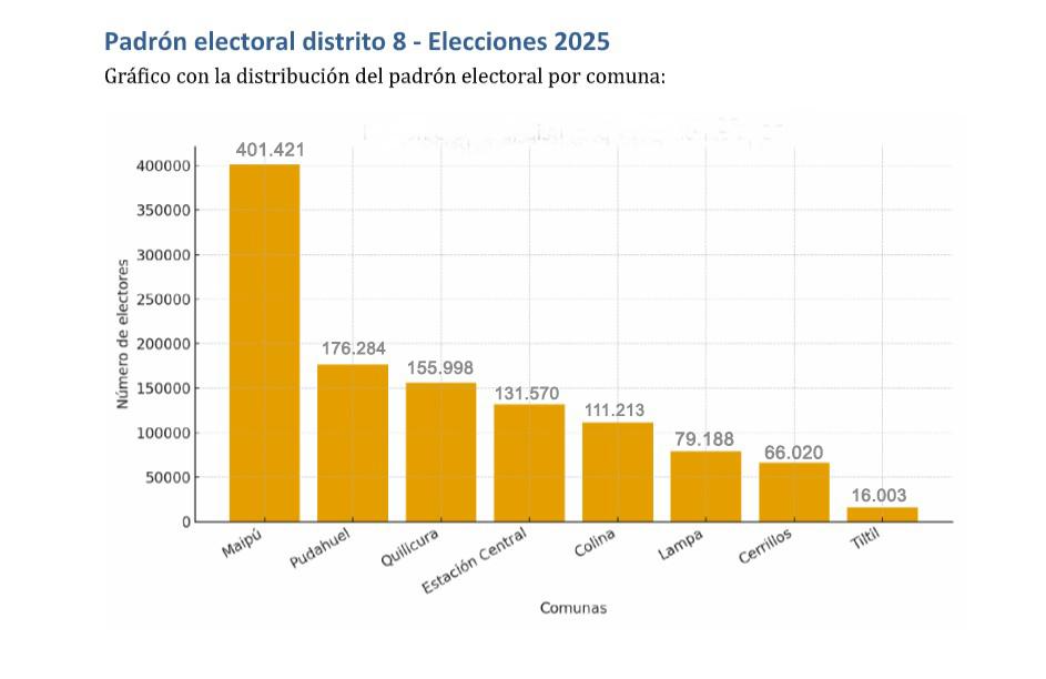 Con un padrón de más de un millón de electores y un peso decisivo de Maipú y Pudahuel, el distrito 8 se convierte en un laboratorio electoral: mientras la mitad de los diputados buscan reelegirse, el PS y el PPD quedan ausentes y la DC apuesta a última hora por un rostro televisivo independiente.