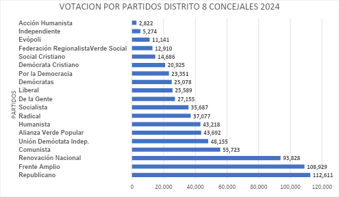 La elección de concejales 2024 y la votación de los partidos políticos en el distrito 8