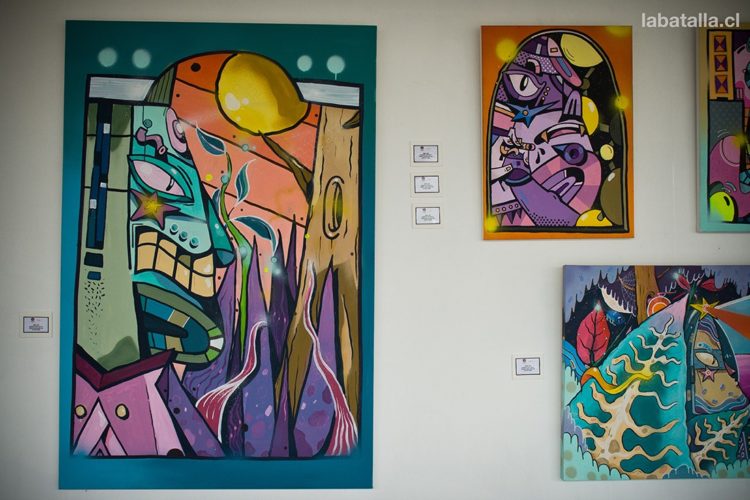 Esta es la primera vez que se expone masiva y abiertamente el trabajo de artistas urbanos en la galería del teatro Municipal de Maipú por lo que significó todo un desafío, una gran responsabilidad que nos tenía expectantes ya que no sabíamos si lograríamos convocar a la gente, desarrollar una propuesta que resultara atractiva. La impresión con la que quedamos tras la inauguración y los primeros días de exhibición es que hemos despertado un gran interés, hemos ido logrado que los vecinos se aproximen de otro modo al arte urbano, es gratificante mostrarles que nuestra disciplina puede utilizar otros formatos – como el óleo sobre tela que usamos acá – la intervención de murales y espacios exteriores es solamente una parte de todo lo que hacemos.