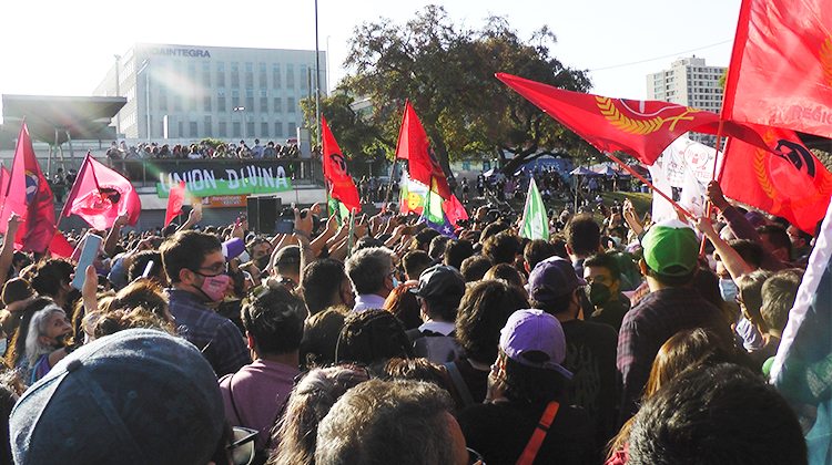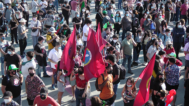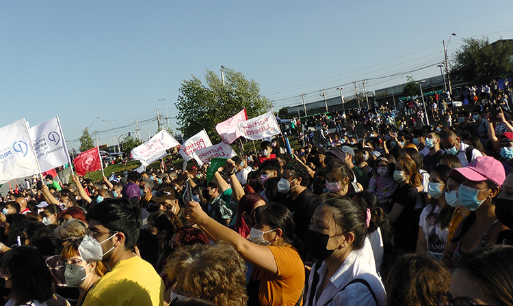 A la espera de la llegada de la figura estelar, el candidato presidencial Gabriel Boric, los concurrentes agitaban sus emblemas mientras voceaban “El pueblo unido jamás será vencido”. Hasta que apareció el candidato, acompañado de su jefa de campaña Izkia Siches y el alcalde de Maipú, Tomás Vodanovic. Protegidos en una nutrida comitiva de acompañantes que les abrían paso entre las y los más entusiastas adherentes, que querían estar cerca del candidato y obtener un retrato, un guiño, un apretón de manos, un saludo de Boric, al momento que más fuerte se escuchaba “se siente, se siente, Boric presidente”.