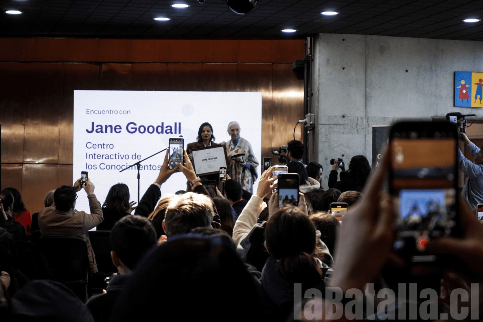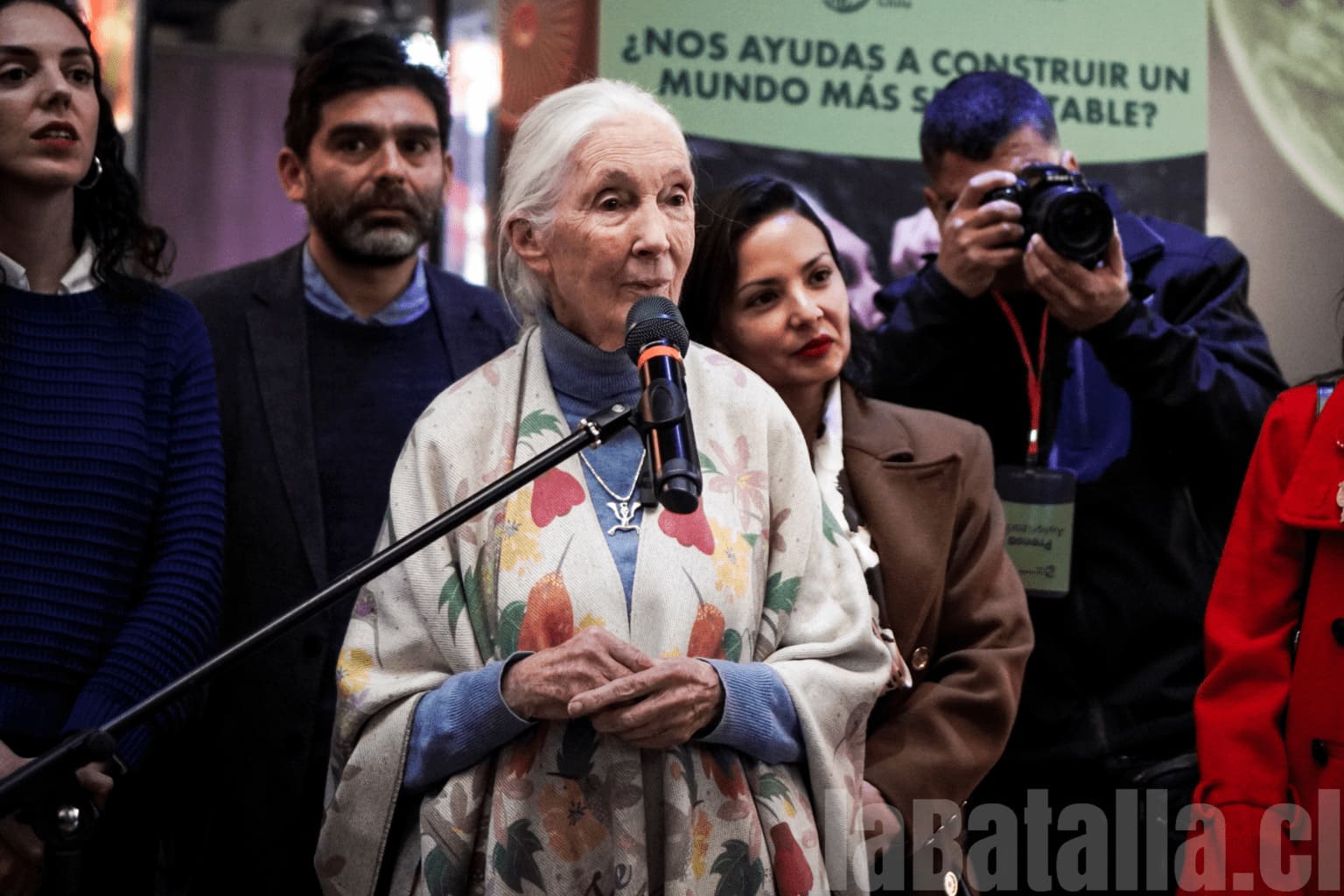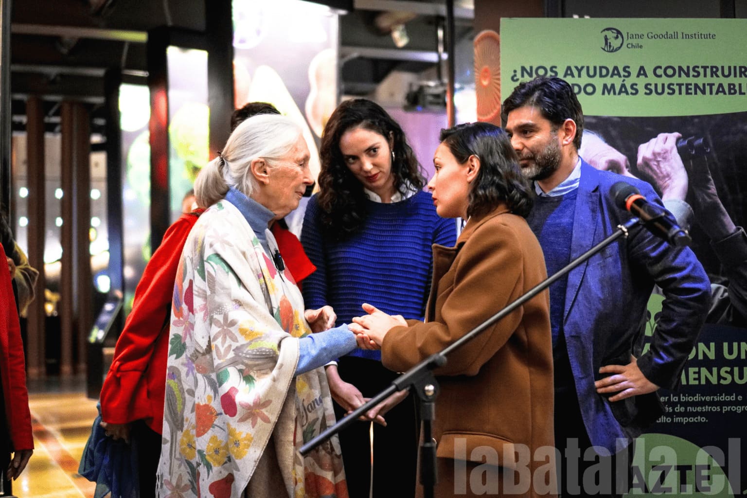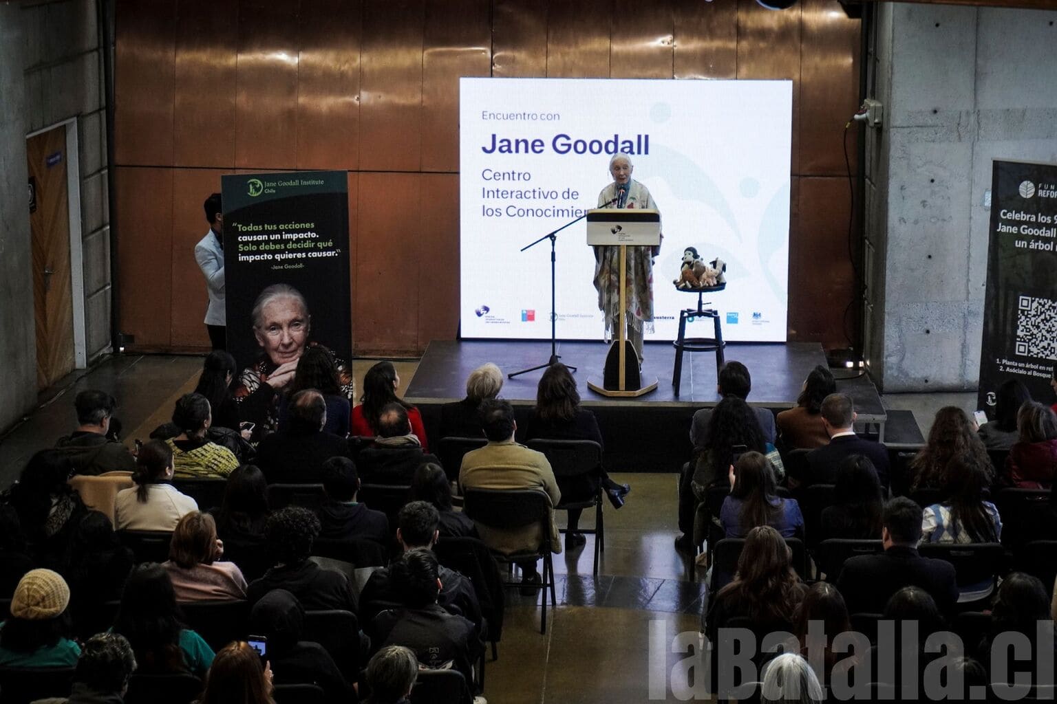 Este viernes 09 de agosto, la etóloga inglesa Jane Goodall, pionera en el estudio de los chimpancés salvajes, activista ambiental y Mensajera de la Paz de la ONU, se reunió con estudiantes de diversas regiones del país, quienes son parte de su programa de educación ambiental “Roots & Shoots” (Raices y Brotes) de la Fundación Jane Goodall Institute Chile.