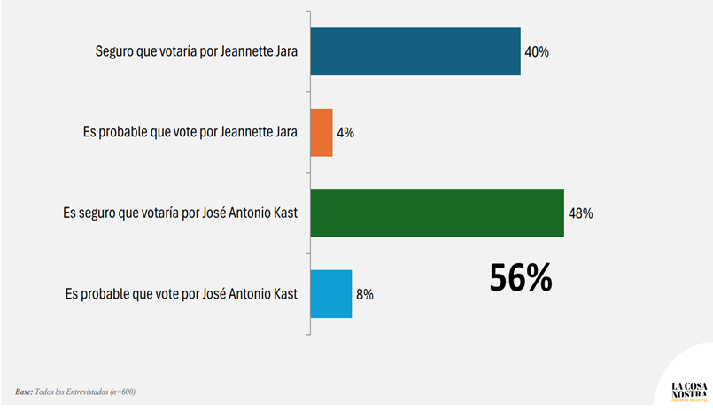 Es seguro, según los pronósticos de LCN, que la candidata oficialista Jeannette Jara ganará la primera vuelta del 16 de noviembre y avanzará a la segunda vuelta. En cambio, no es posible asegurar lo mismo respecto del candidato de la derecha.