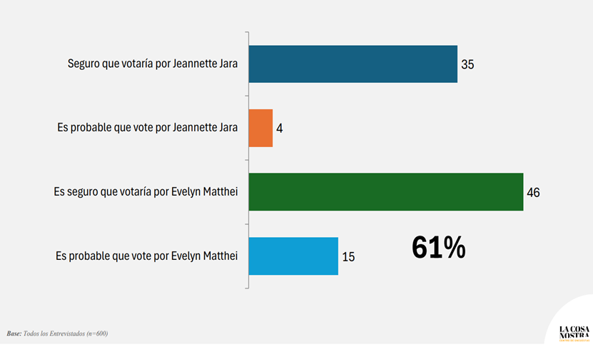 Evelyn Matthei vencería a Jeannette Jara por 61% a 35%, reforzando su perfil de candidata con mejor evaluación en atributos personales y gobernabilidad.
