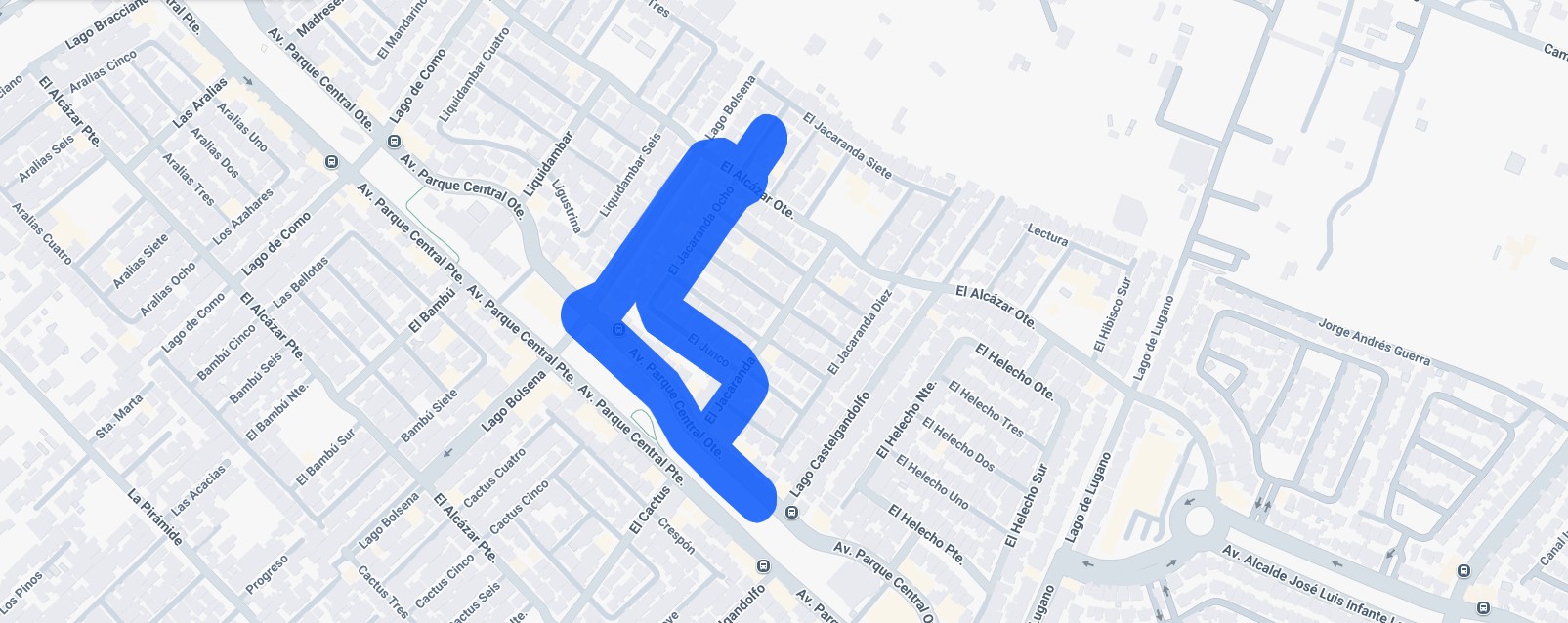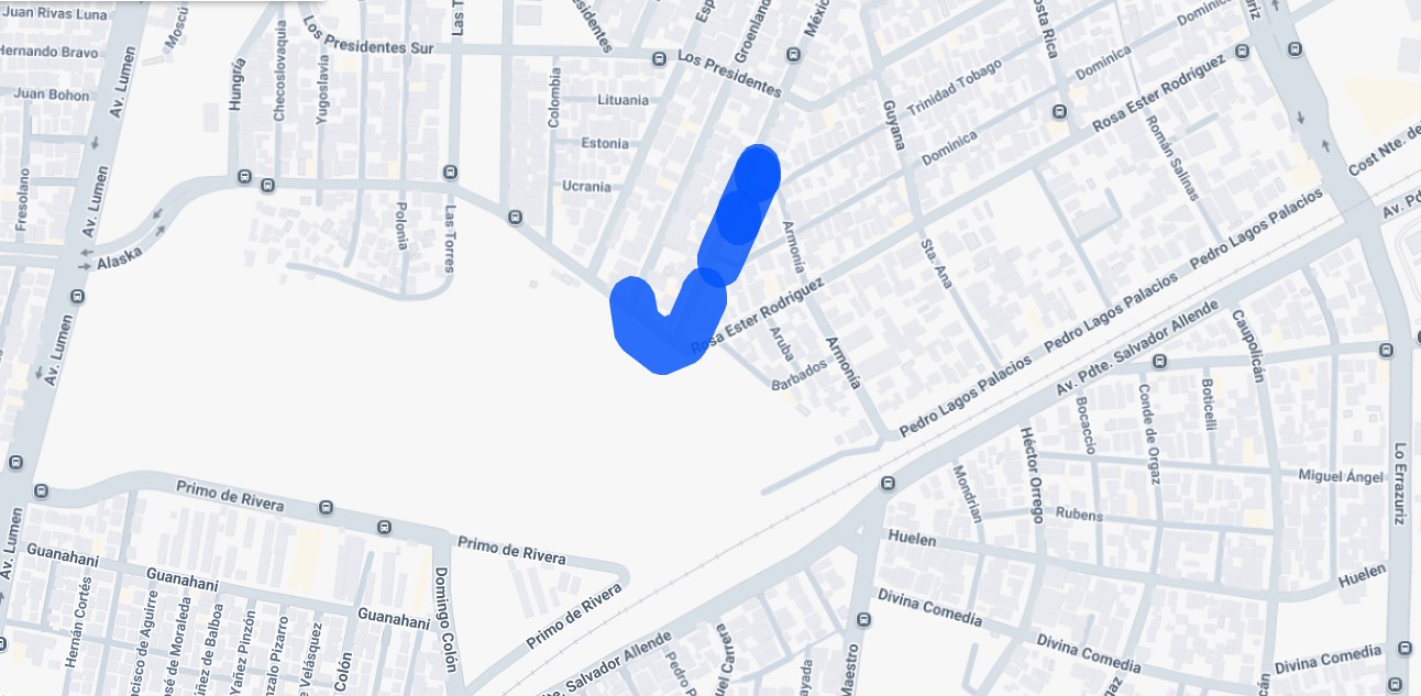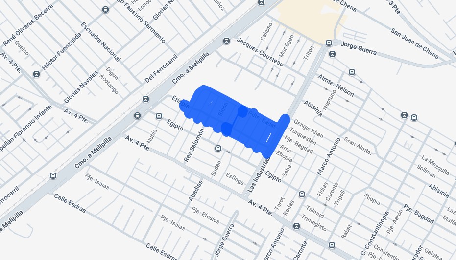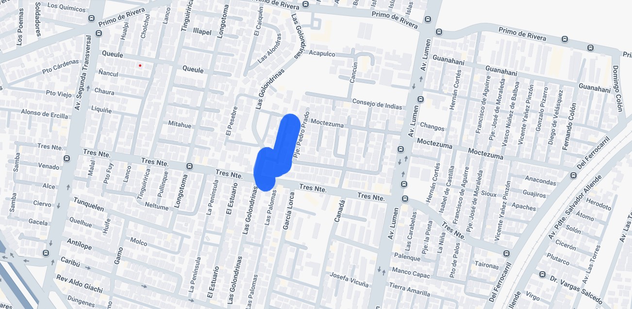- Barrio Ciudad Satélite, sector Jacarandá, desde Parque Central Oriente hasta Alcázar Oriente (Maipú)