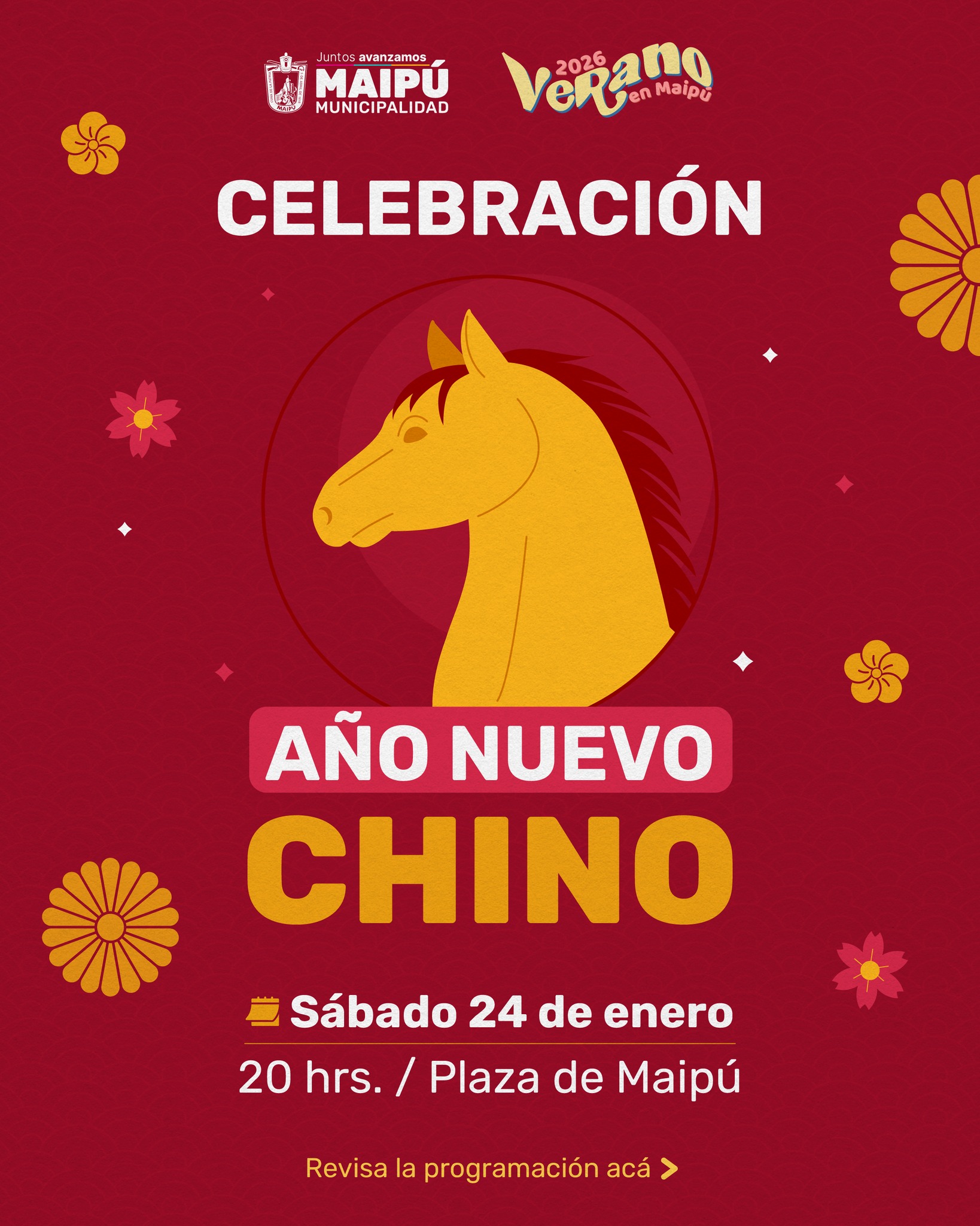Este sábado 24 de enero, la Plaza de Maipú será el escenario de la celebración del Año Nuevo Chino, con una jornada cultural que incluirá talleres de artes marciales, danzas tradicionales, pasacalles y un espectáculo de cierre.