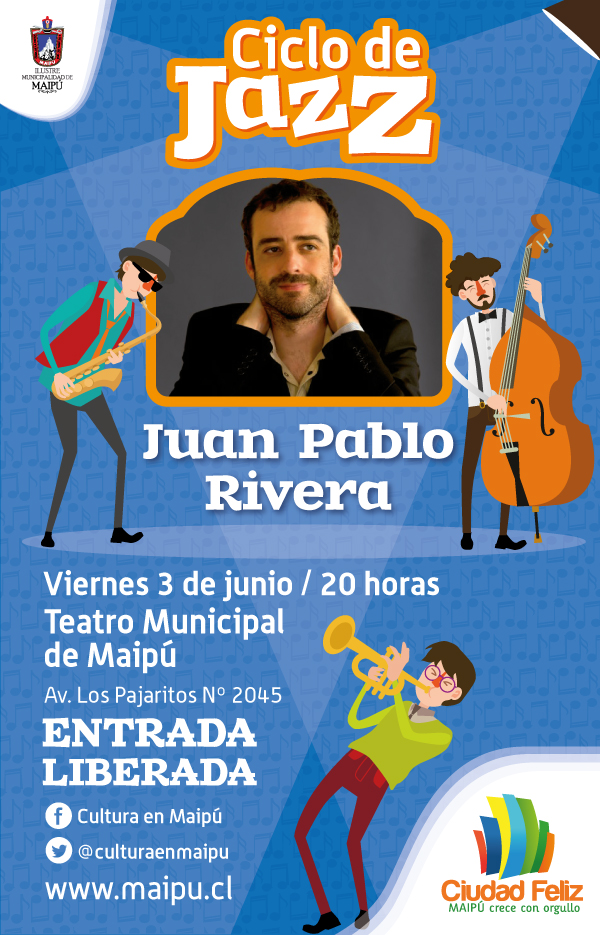 Como parte del Ciclo de Jazz que realiza todos los meses la Municipalidad de Maipú totalmente gratis, se presenta el show musical de “Juan Pablo Rivera, Quinteto”. La cita es este viernes 03 de junio, a las 20:00 horas, en el segundo piso del Teatro Municipal de la comuna.