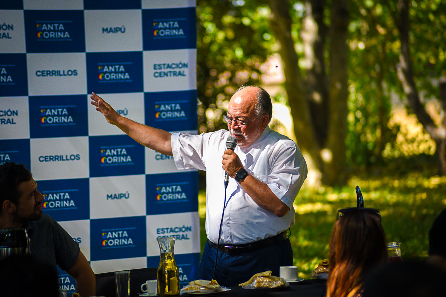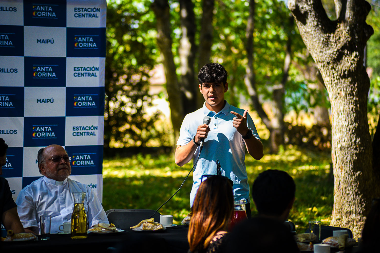 Entre las autoridades presentes estuvieron el alcalde de Maipú, Tomás Vodanovic, el Padre Marcelo Aravena Gutiérrez, rector del Templo Votivo de Maipú, el jefe del Departamento Provincial de Educación Santiago Poniente, Jorge Rauld González, y el director ejecutivo del SLEP Santa Corina, Ignacio Cáceres Pinto. Los alcaldes de Cerrillos y Estación Central no asistieron.