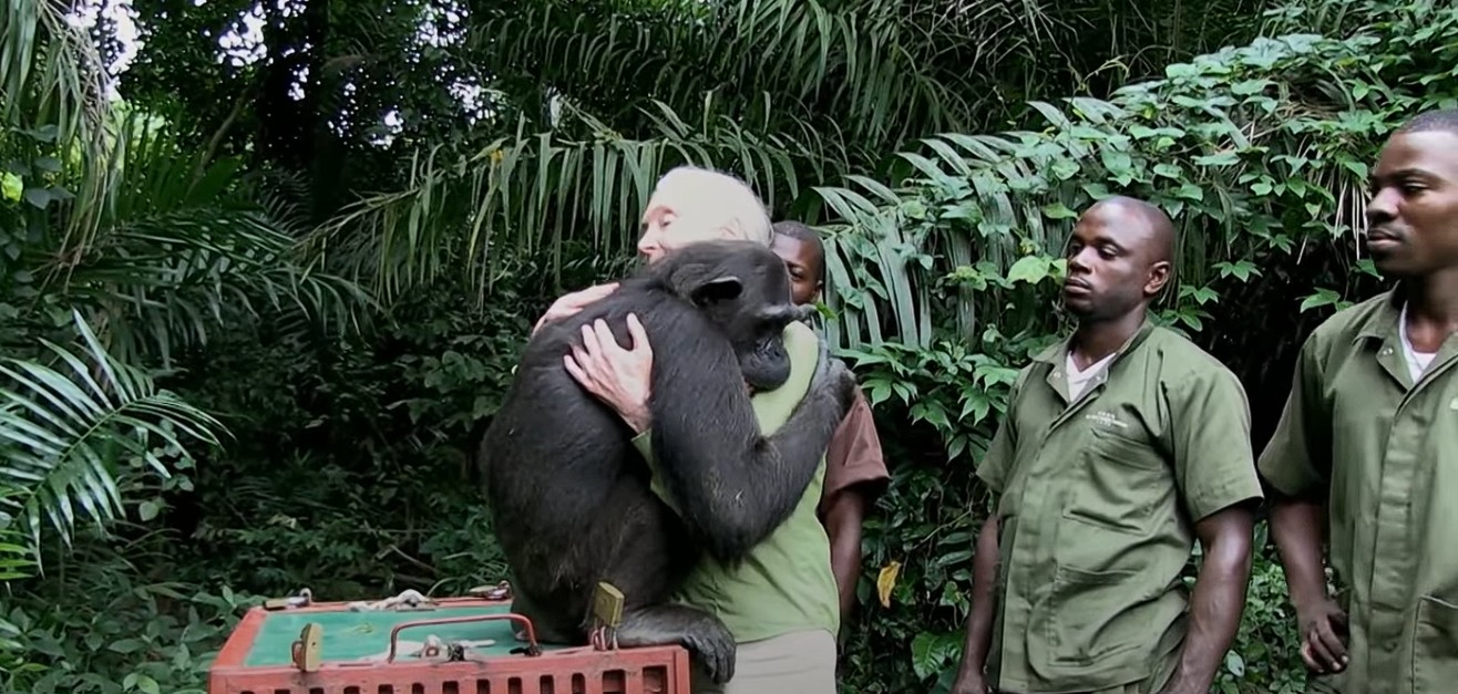 En una ocasión (2017) una chimpancé llamada Wounda, rescatada tras ser víctima del comercio ilegal de animales, la abrazó al ser liberada en su hábitat natural.