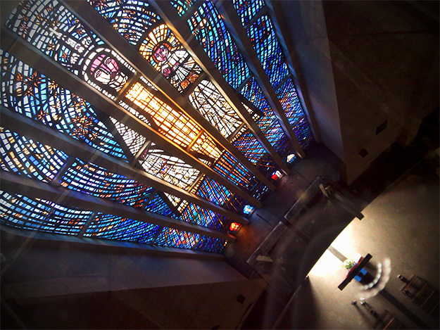El vitral dedicado a la virgen, desde el interior del templo. | www.labatalla.cl