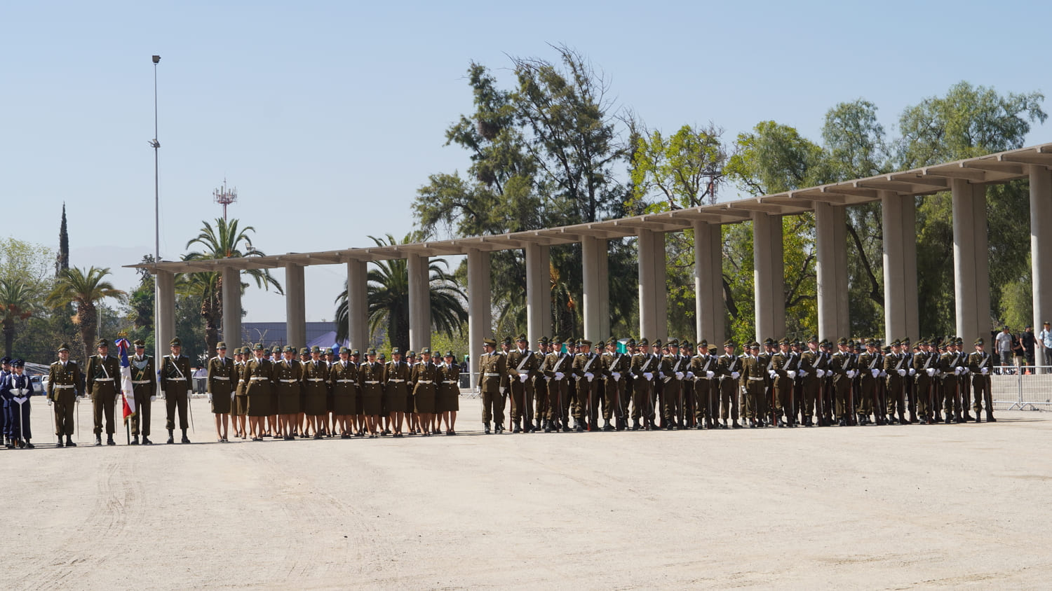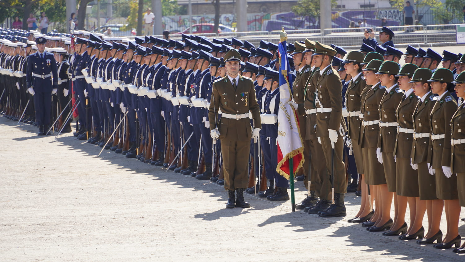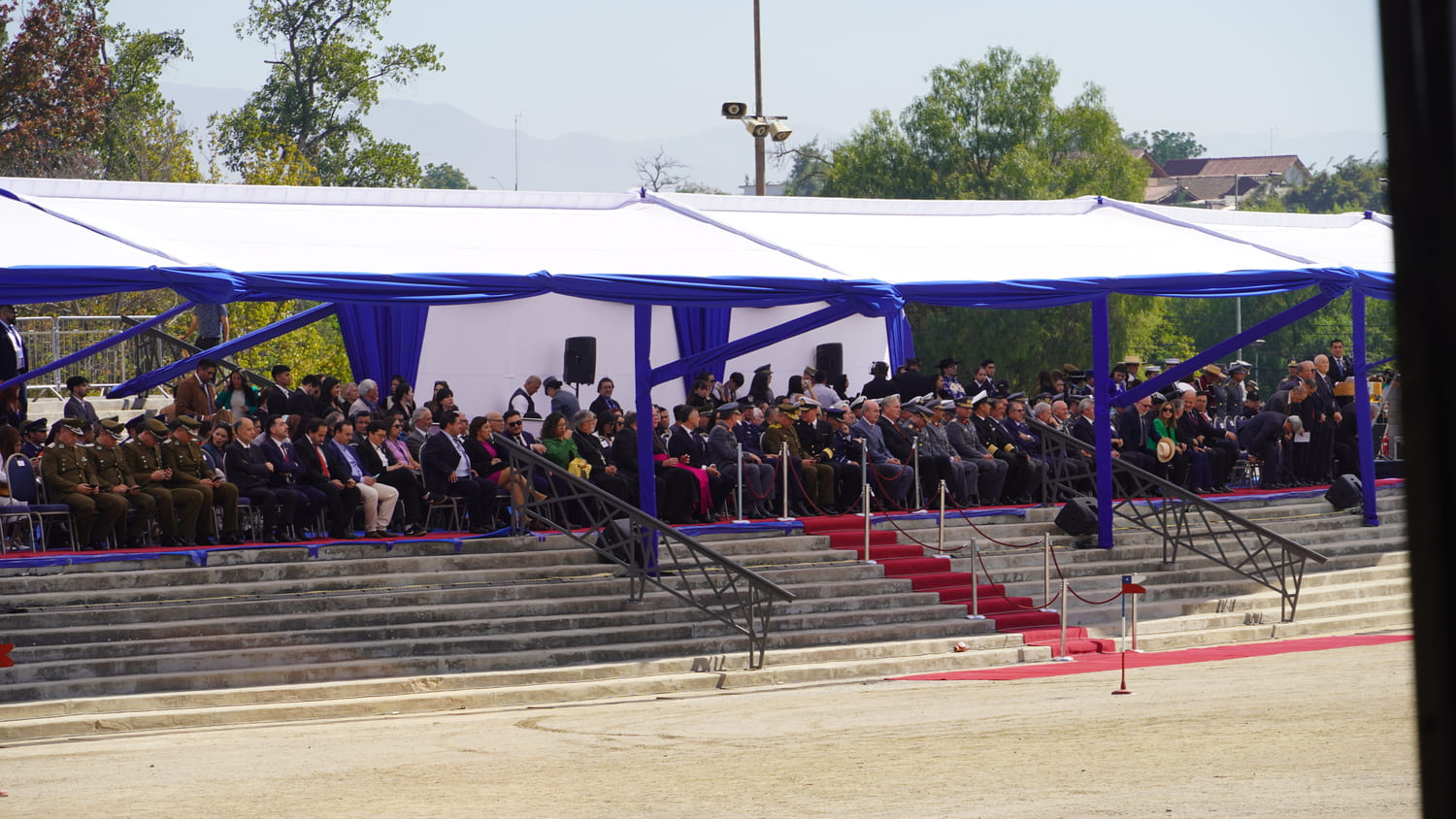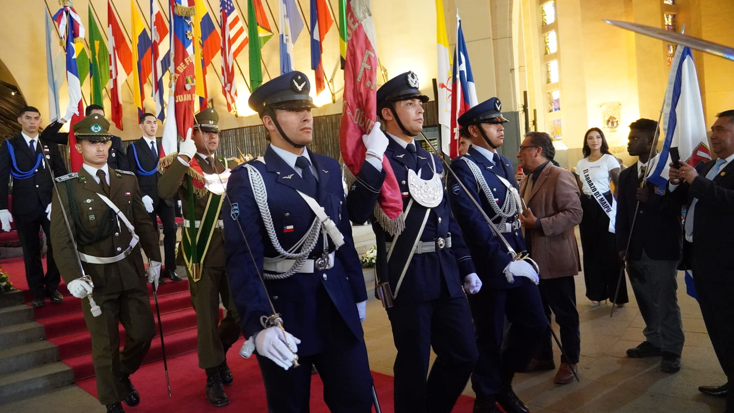 Tras la ceremonia religiosa realizada a las 09:40 horas en el Santuario Nacional de Maipú, la jornada continuó con el desfile cívico-militar programado para las 11:20 horas en la explanada del recinto.