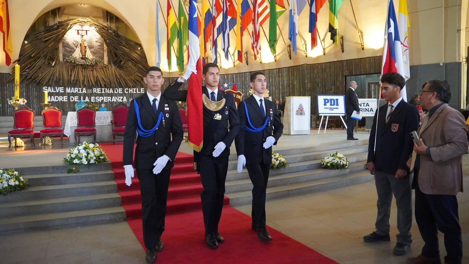 A la ceremonia asistieron el alcalde Tomás Vodanovic, el comandante general de la Guarnición de Ejército de la Región Metropolitana, Sebastián García-Huidobro, y el rector del Santuario Nacional de Maipú, padre Marcelo Aravena, además de autoridades locales y el diputado Mario Olavarría. No se registró presencia de autoridades de gobierno central.