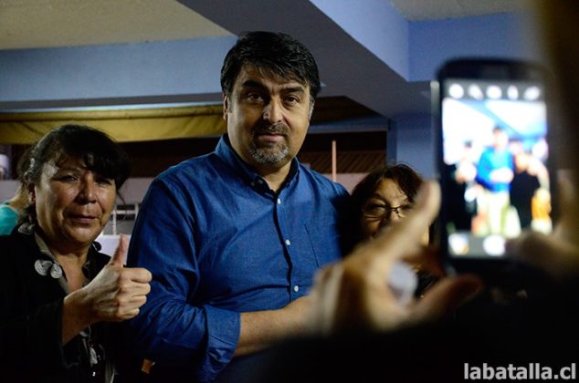 A las 19:37 hrs., y tras felicitar a su equipo de campaña, en la Av. 5 de abril, el concejal Mauricio Ovalle saludó a su contendor, a la larga electo.
