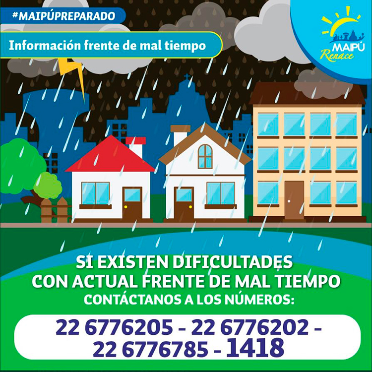La Municipalidad ha difundido por medio de sus redes sociales una información sobre el mal tiempo, publicando números telefónicos de ayuda frente a eventuales dificultades.