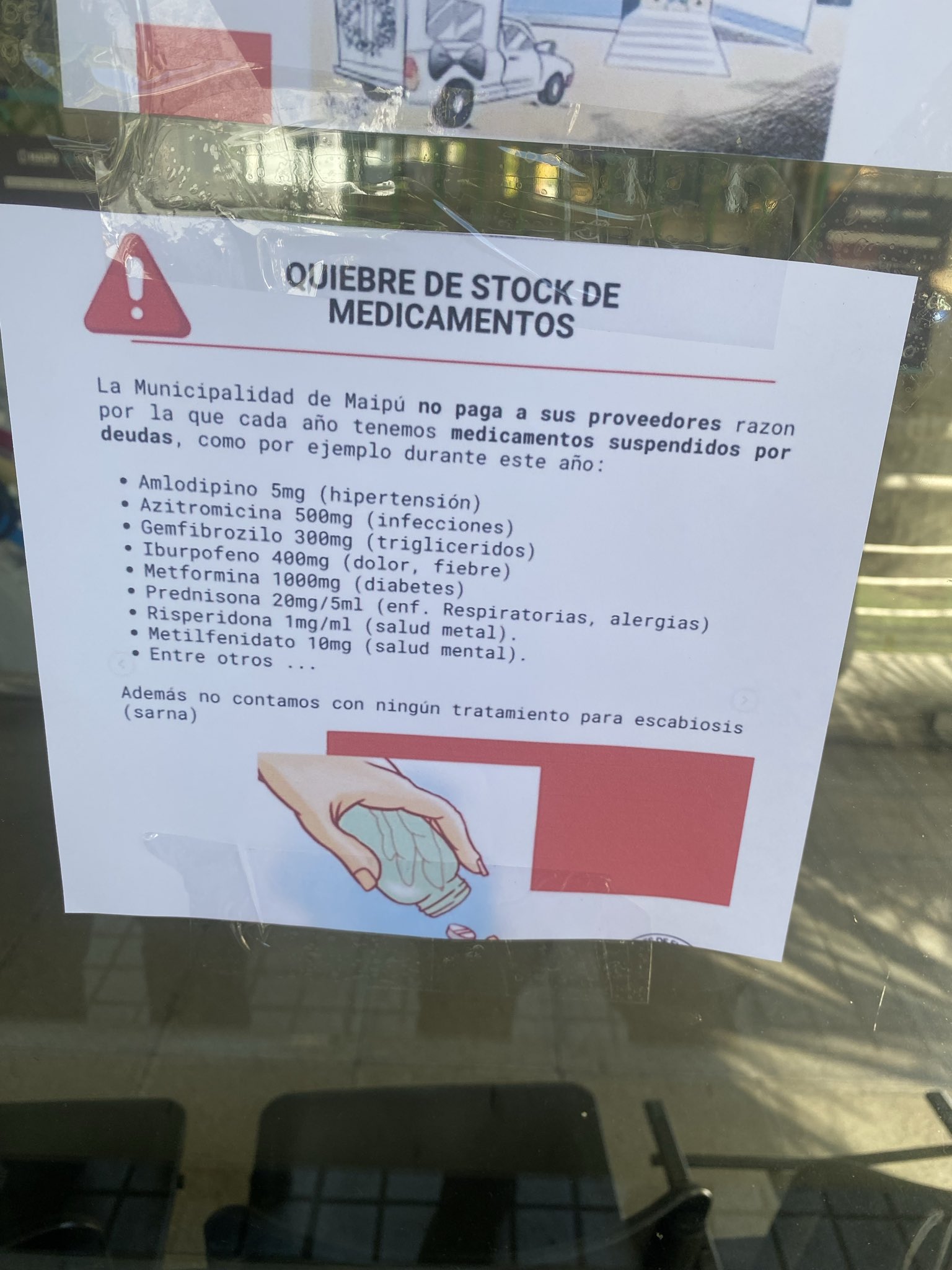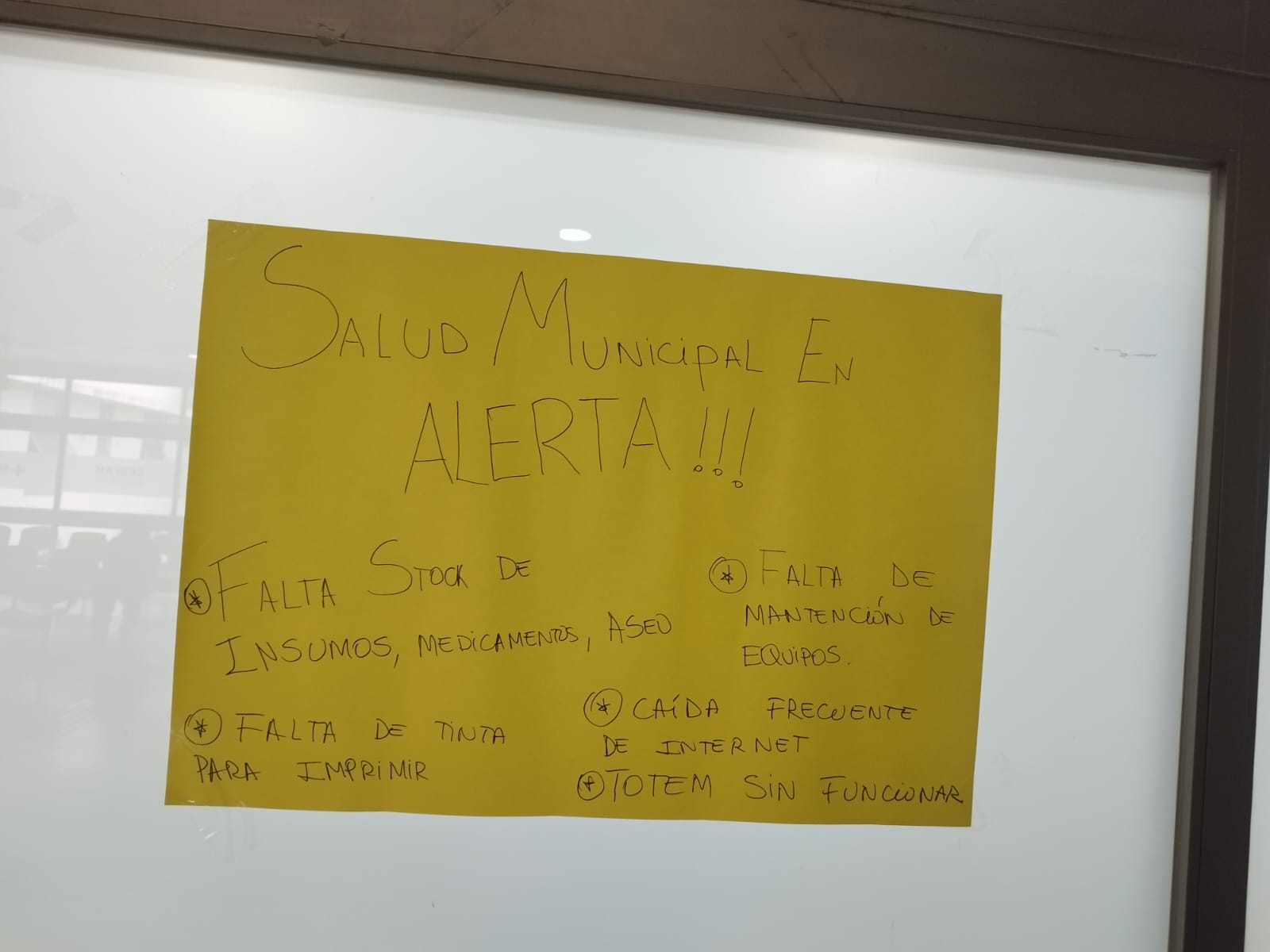 “Fui a una hora con mi papá y nos dijeron que están en paro por falta de insumos y materiales al Cesfam. Que no hay un acuerdo con el municipio”.