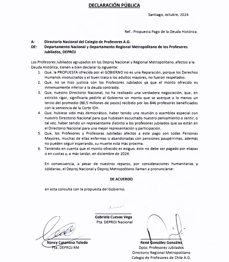 Declaración de Profesores Jubilados: