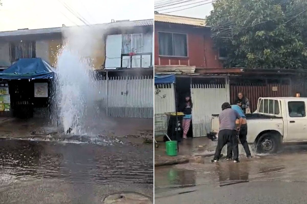 El video del momento, que muestra el agua brotando como si se tratara de una fuente pública en medio de la calle, fue enviado a La Batalla por la Mesa de Seguridad de La Farfana, quienes registraron la escena y la compartieron como alerta comunitaria.