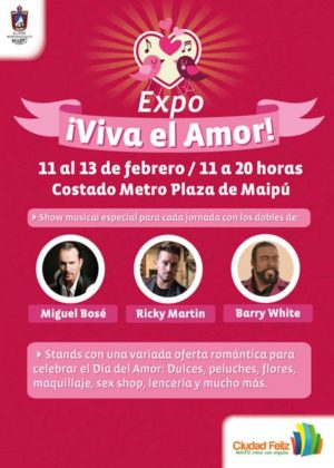 Desde el 11 y hasta el 14 de febrero tendrá lugar en la Plaza Mayor la «Expo Viva el Amor», organizada por la Municipalidad de Maipú.