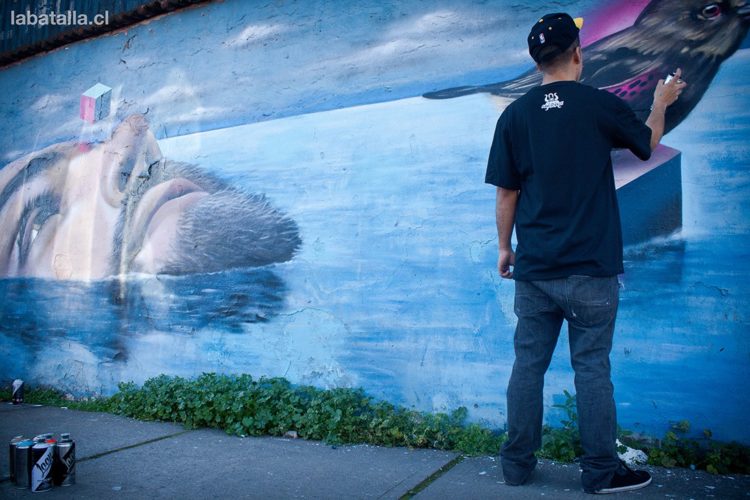 Veo que hay un poco de ambas… En esta disciplina todos trabajamos mucho por separado pero eventualmente generamos instancias de diálogo y colaboración, de trabajo en conjunto que es sumamente importante, siempre que se unen personas tras un objetivo el resultado es más grande que si lo buscas de manera individual. Ahora mismo la exposición que montaremos en el Teatro de Maipú considera incluir el trabajo de otros 3 artistas, con este tipo de colaboraciones se generan lazos y por supuesto que ayudan a llegar a más gente y más lugares. Acá en Chile hay muy buenos artistas urbanos y generar alianzas entre nosotros siempre resulta positivo para todos.