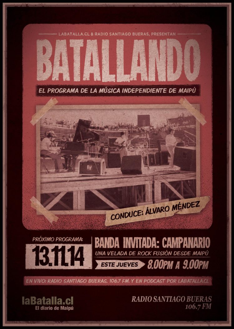 Radio Santiago Bueras, 106.7 FM, y La Batalla producen Batallando, un espacio que pretende ser protagonista y aliado de los músicos y artistas maipucinos.