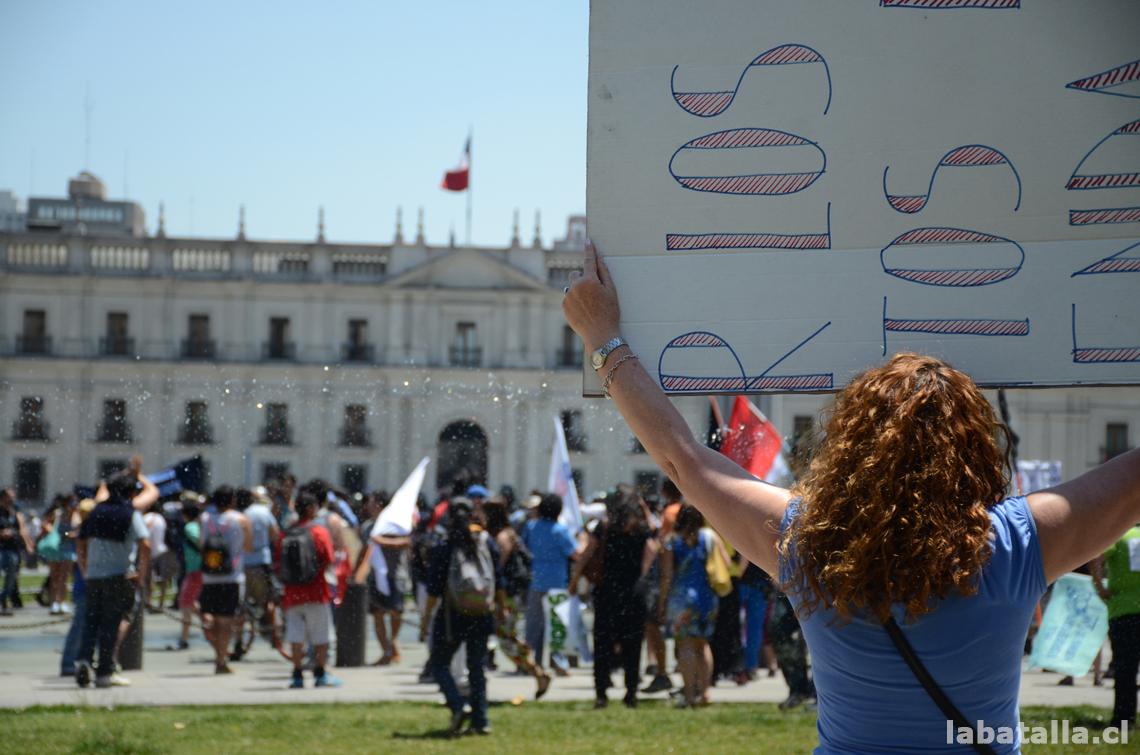Tras pasar la calle Zenteno, la columna se quebró, y los profesores cruzaron el bandejón central de la Alameda para apostarse frente a La Moneda.