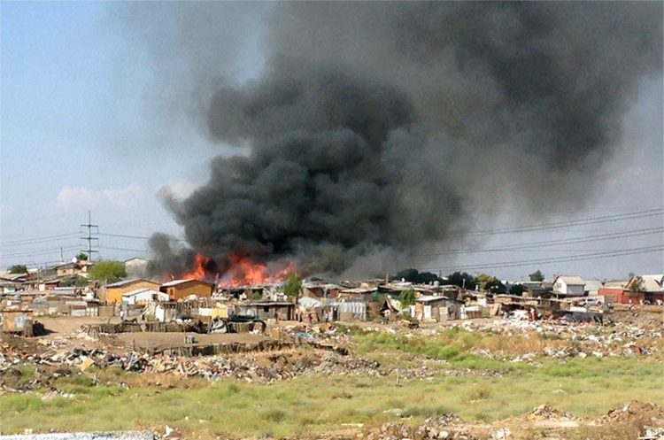 Un incendio de grandes proporciones afecta al campamento Japón en la comuna de Maipú (referencia: Alaska con Lumen).
