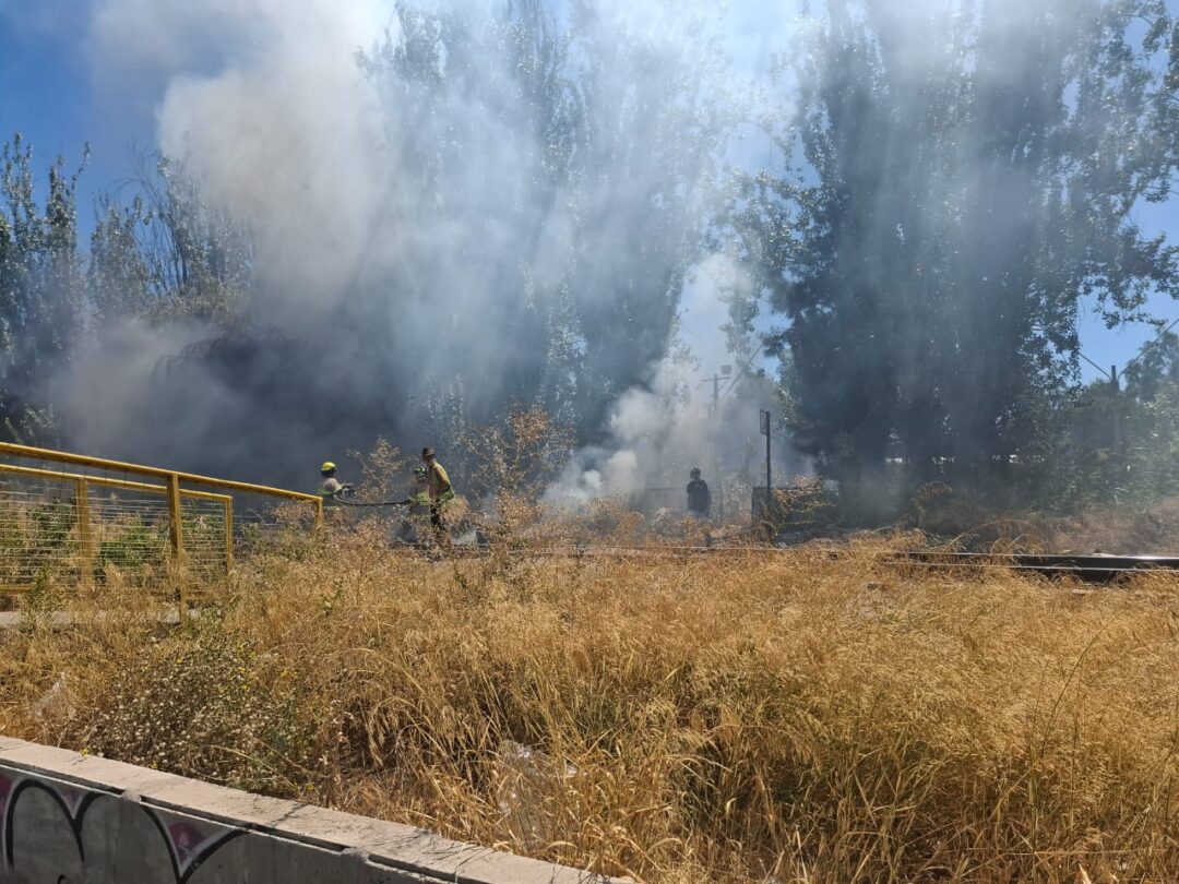 Incendio de pastizales frente a MidMall en Maipú moviliza a Bomberos