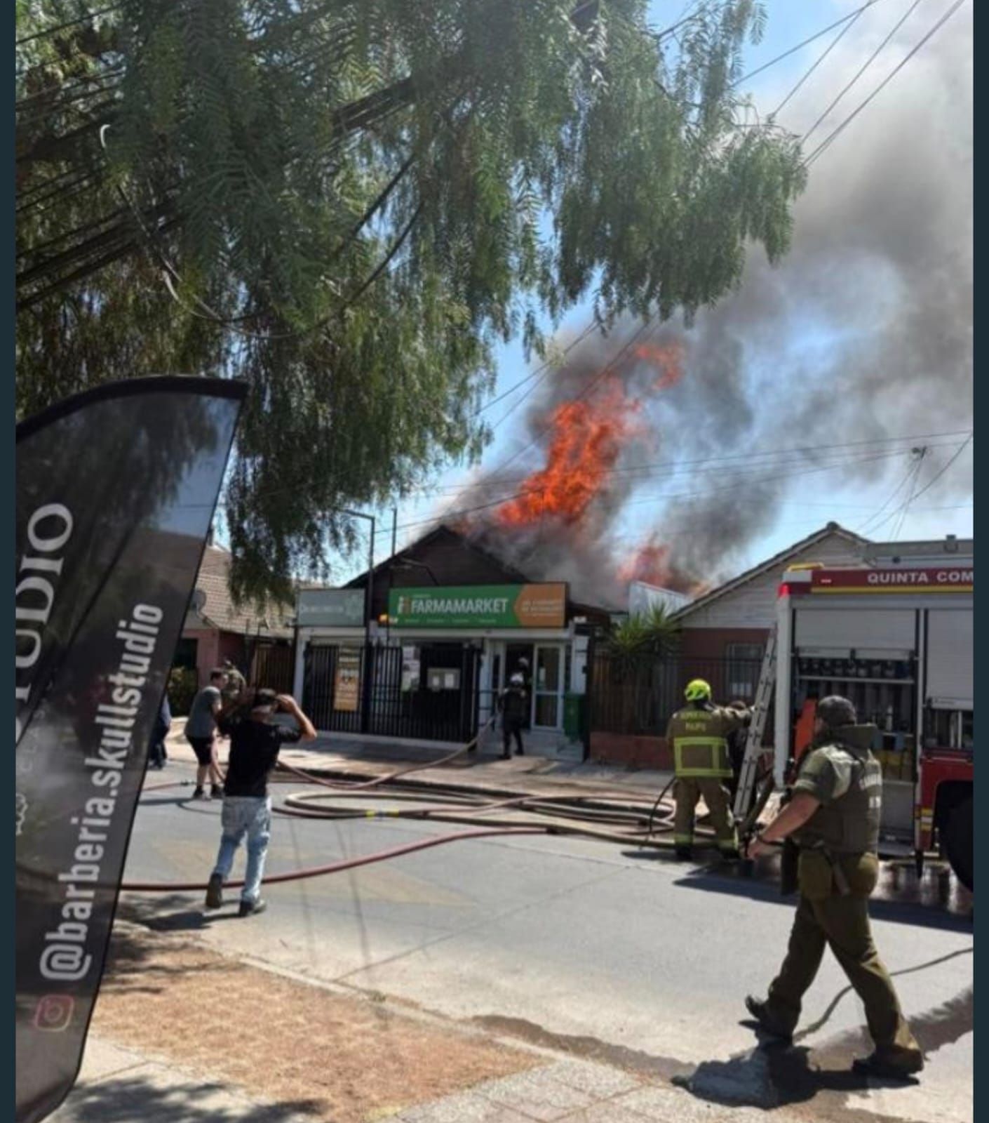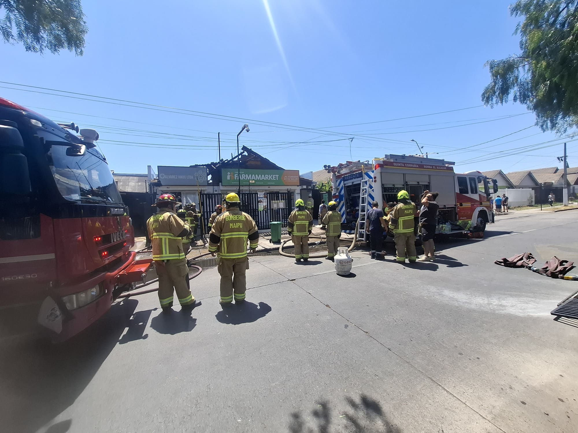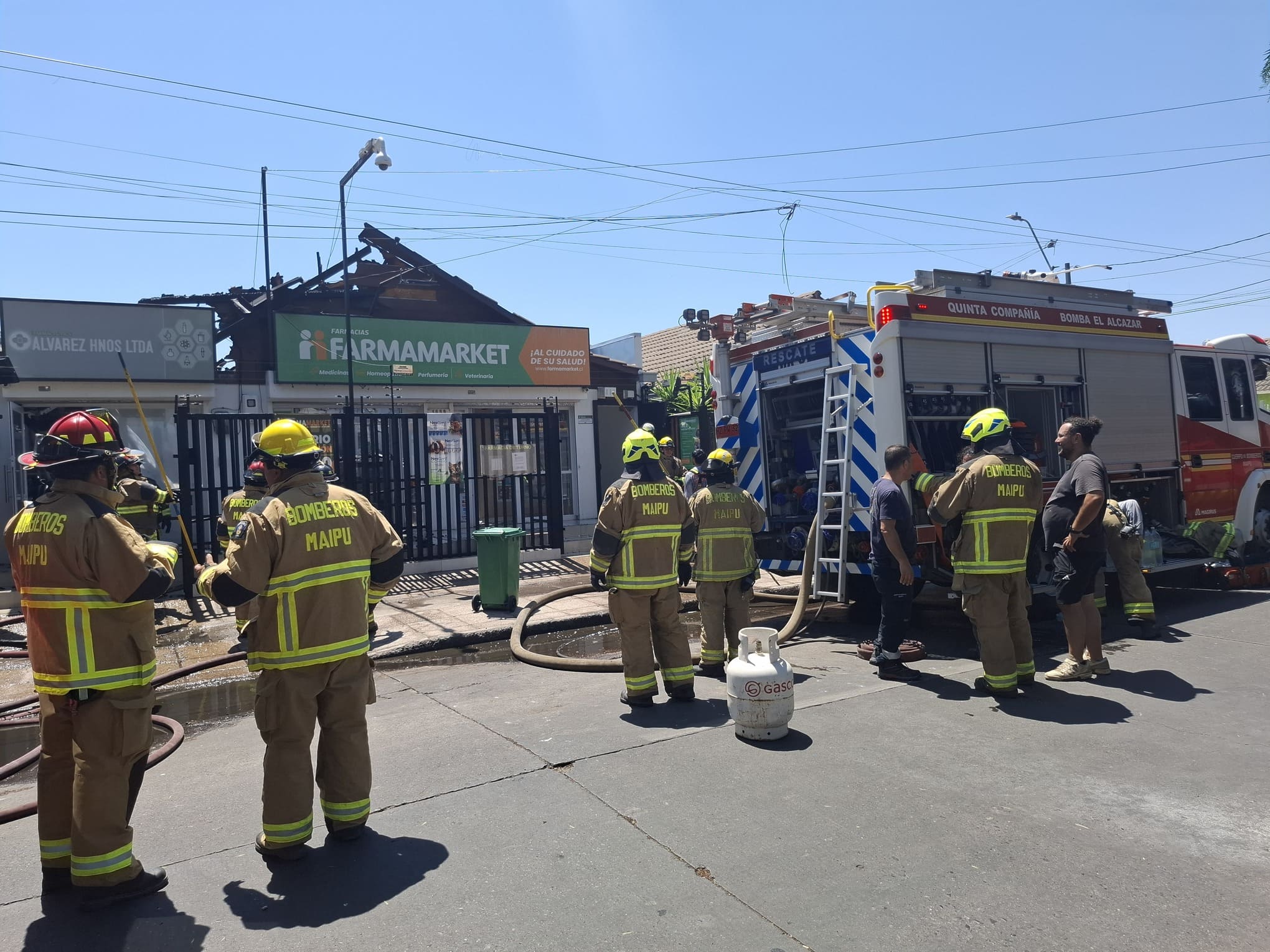 Un incendio registrado cerca de las 12:30 horas este jueves 29 de enero afectó a la farmacia «Farmamarket» ubicada en el sector Parque Central Oriente con Lago de Lugano, en el barrio Ciudad Satélite de Maipú.