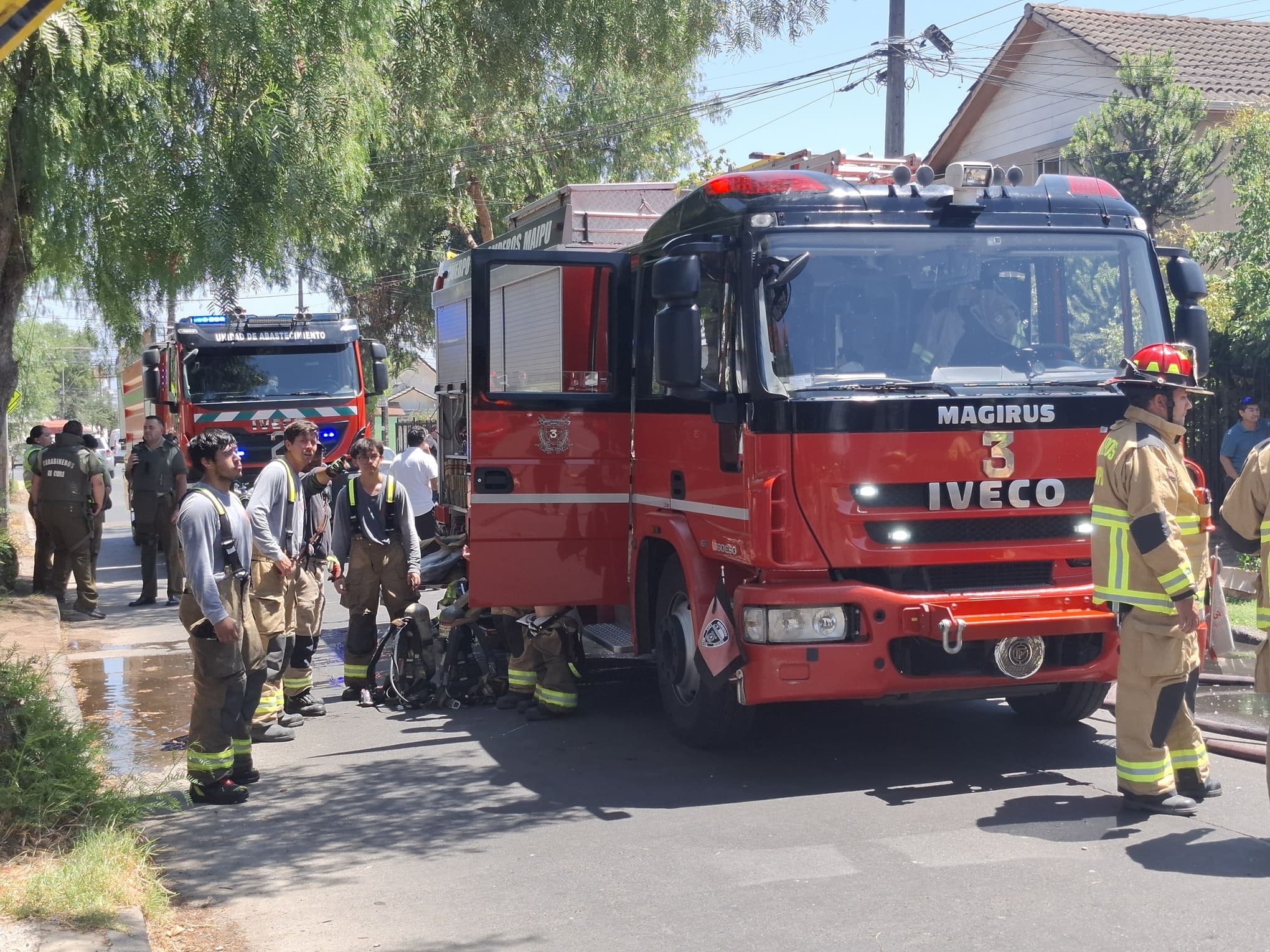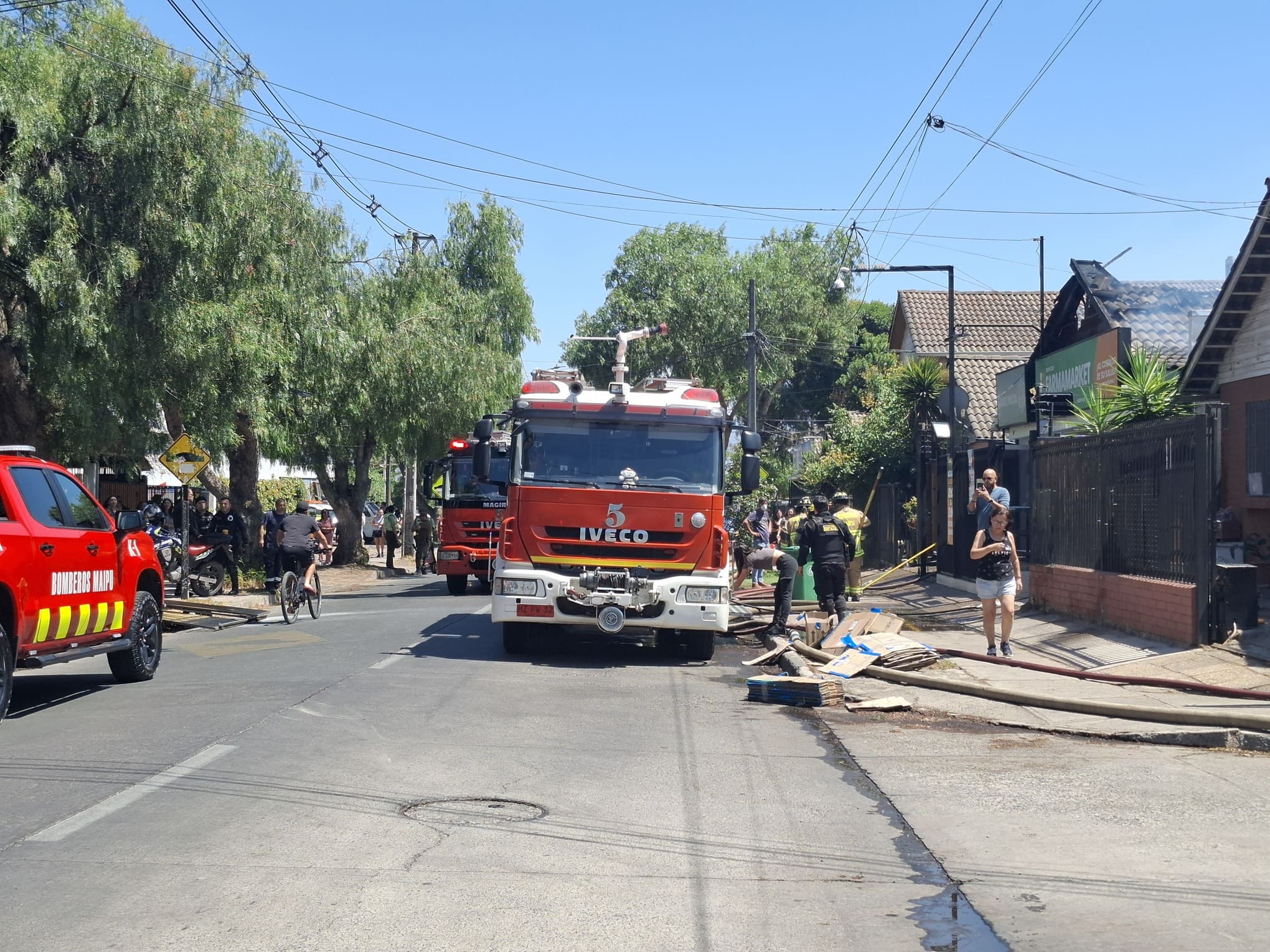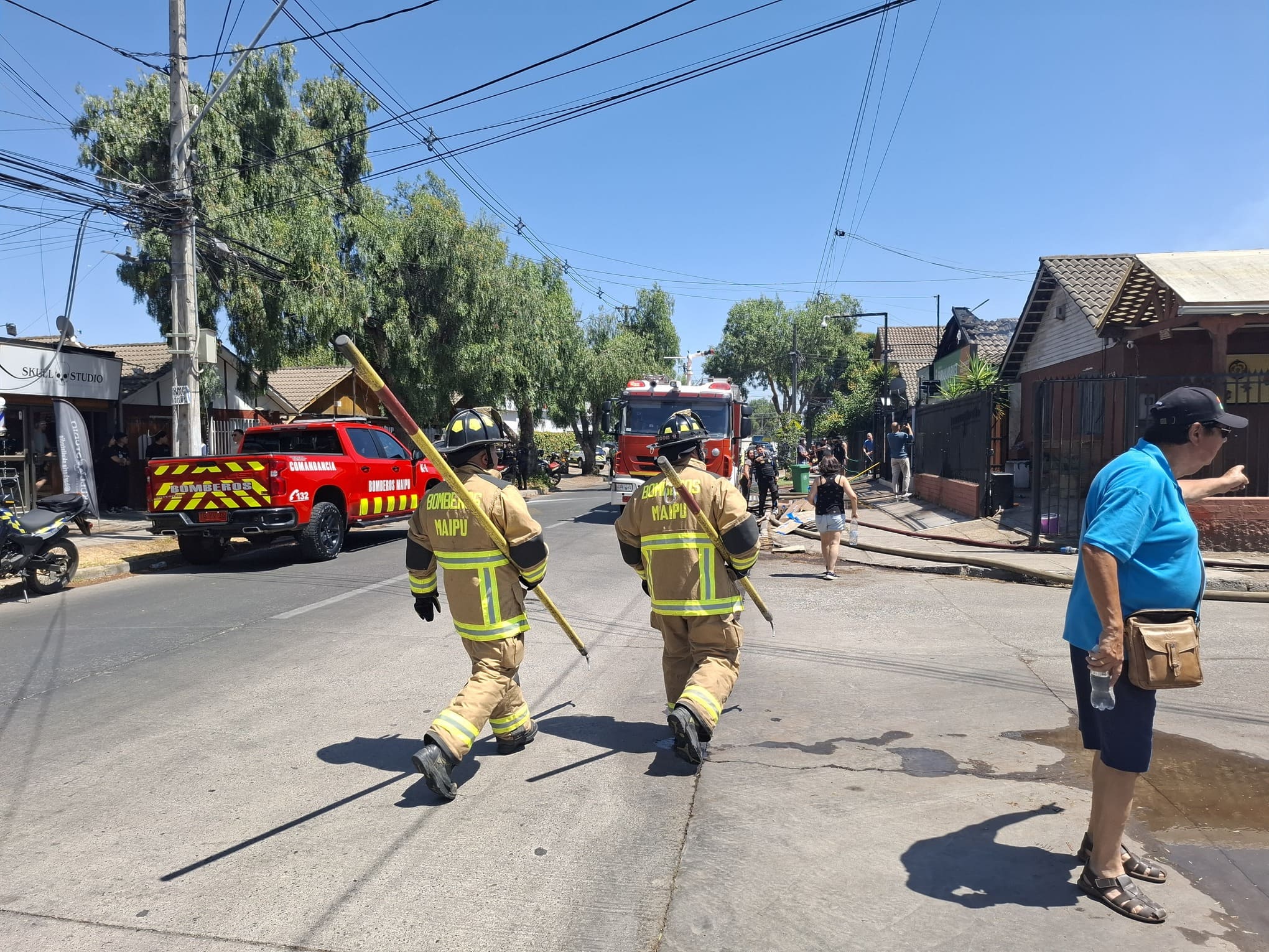 La emergencia motivó la declaración de una primera alarma de incendio, lo que implicó el despliegue de las compañías 1ª, 2ª, 3ª, 5ª y 7ª del Cuerpo de Bomberos de Maipú, con apoyo de unidades de los cuerpos de Bomberos de Quinta Normal y Padre Hurtado, además llegaron a asegurar el perímetro personal de Carabineros y de Seguridad Comunitaria. El mando del operativo estuvo a cargo del comandante de bomberos, Claudio Salinas González.
