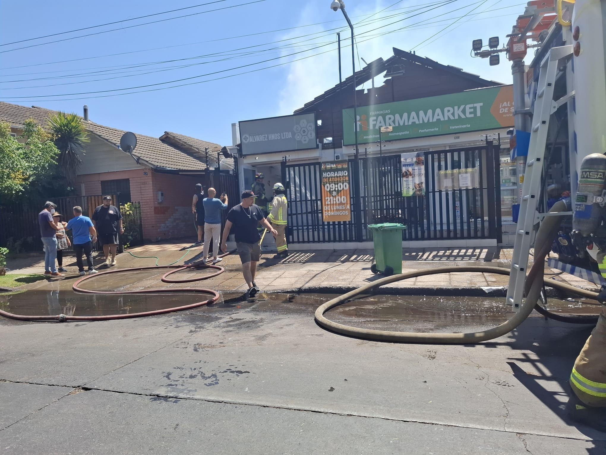 Desde el interior del recinto, el director técnico de la farmacia, Vicente Medel Palma, relató que el incendio se inició tras un corte de suministro eléctrico.