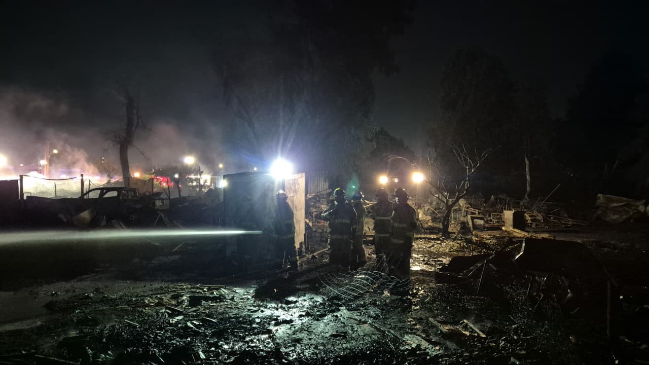 Salinas detalló que, de manera preliminar, hay seis viviendas afectadas, todas de material ligero y de pequeñas dimensiones. En cuanto a lesionados, confirmó un voluntario de Bomberos con una lesión ósea y un residente del sector que habría sufrido radiación térmica al inicio de la emergencia.