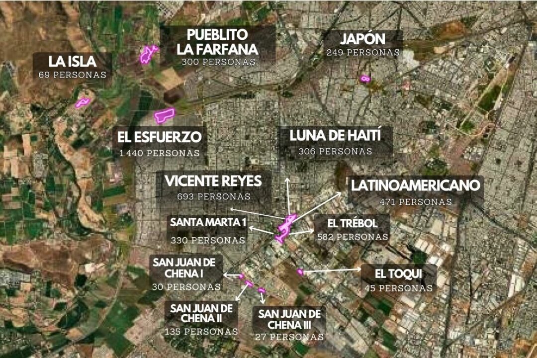 En los últimos años, la comuna de Maipú ha experimentado una transformación significativa en su realidad habitacional informal. Según el reciente informe, actualmente existen 13 campamentos en la comuna, albergando a 1.559 familias, con una población estimada de 4.677 personas. De ellas, 264 son adultos mayores y 1.546 son niños, niñas y adolescentes.