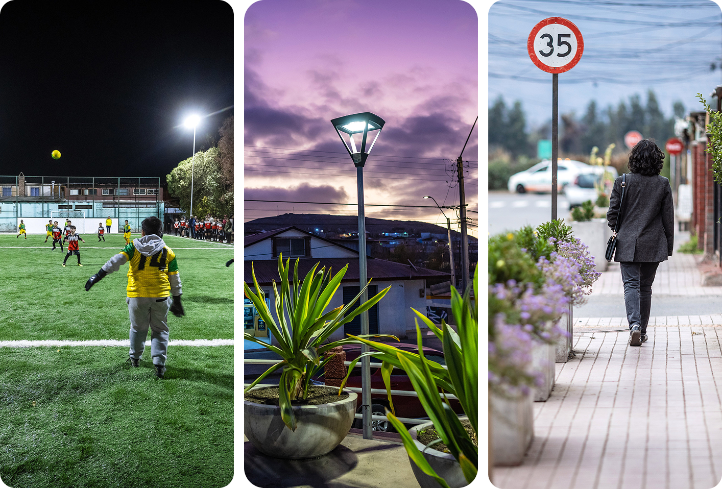 También se han desarrollado proyectos de iluminación y seguridad, con reposición de luminarias y cámaras de vigilancia en distintos barrios, además de mejoras en movilidad urbana mediante veredas, ciclovías y reductores de velocidad. En conjunto, estos proyectos apuntan a fortalecer la vida comunitaria, el deporte y la seguridad barrial, consolidando una estrategia de mejoramiento urbano integral en Maipú.