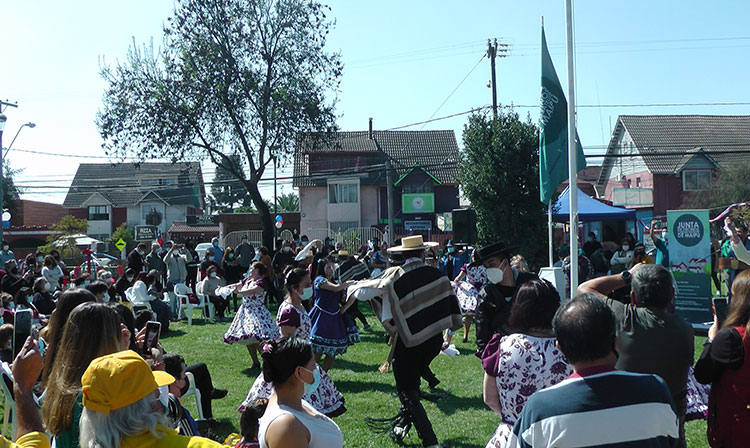 Con algunos reparos al protocolo, se inició esta ceremonia en la que intervinieron el presidente de la Junta de vecinos, luego el alcalde Vodanovic, para enseguida recién proceder a la entonación del himno nacional y culminar con unos siempre coloridos y alegres pies de cueca.